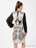 Платье на выход с гофрированными рукавами и оригинальным принтом. Полуприталенный крой, длинные рукава и округлый вырез горловины. Отличный вариант для создания незабываемого образа.