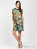 Эффектное платье прямого силуэта из тонкого, легкого шелкового материала. Округлый вырез горловины. На спинке небольшой вырез дополненный завязками. Короткие рукава с манжетами. Карманы в боковых швах. Ворот, манжеты и входы в карманы выполнены из кашкорсе. Небольшие разрезы в боковых швах. Будьте всегда в центре внимания!