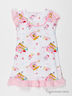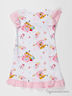 Комфортное, легкое платье из тонкого, мягкого трикотажа с красочным печатным рисунком. Округлый вырез горловины. Полочка декорирована контрастной вставкой и маленькими изящными бантиками. Короткие рукава-крылышки. Подол дополнен оборками.