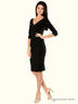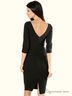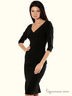 Платье с рукавами 3/4 и глубоким вырезом декольте. Модель приталенного кроя выполнена из качественного материала привлекательной расцветки. Отличный вариант на каждый день.