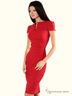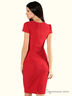 Платье с короткими рукавами и округлым вырезом горловины. Подчеркивающий фигуру покрой. Отличный вариант для создания стильного повседневного образа.