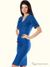 Стильное платье с короткими рукавами и фигурным вырезом горловины. Модель приталенного кроя выполнена из качественного материала привлекательной расцветки. Отличный вариант на каждый день.