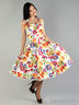 Детали: оригинальная бретель через шею, сзади застегивается на молнию и крючок, яркий принт
