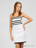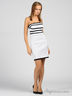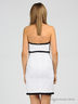 Комфортное и стильное Коктейльное платье без бретелек. Лиф декорирован черными полосками. Прекрасно сидит по фигуре, сильно подчеркивая талию. Застегивается на молнию сзади. Сдержанная и оригинальная модель выполнена в классическом черно-белом цвете.