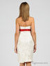 Элегантное и игривое коктельное платье без бретелек. Выполнено из белого кружева с атласной подкладкой. Под грудью бордовый втачной пояс с крупным бантом. Застегивается на молнию сзади. Прекрасно подчеркивает фигу. Это платье не оставит никого равнодушным.
