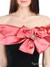 Детали: округлый вырез, короткие рукава, спереди отложной ворот с сверкающей брошью, сзади застегивается на молнию и крючок, снизу шлица
