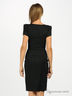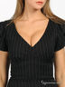 Строгое элегантное платье в тонкую белую полоску. V-образный вырез подчеркивает линию шеи. Оригинальные короткие рукава с разрезами. Модель прекрасно подчеркивают фигуру. Застегивается сбоку на молнию. Сзади небольшой разрез.
