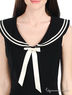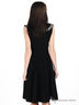Детали: округлый вырез, отложной воротник, полочка украшена атласным бантиком, без рукавов, сбоку застегивается на молнию, втачной пояс