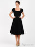 Детали: вырез "каре", короткий рукав, отрезной лиф, скрытая застежка на молнию на спинке, по боковым швам пришиты шлевки, атласный поясок-лента в комплекте, сборки