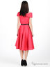Детали: округлый вырез, на широких бретелях, спереди оригинально присборено в бант, сзади застегивается на молнию и крючок, талия подчеркнута атласным поясом