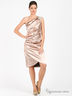 Детали: лямка на одно плечо, скрытая застежка на молнию в левом боковом шве, драпировка, лямка украшена нашивкой из бисера и страз