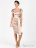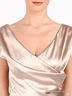 Детали: V-образный вырез горловины с запахом, короткий рукав, отрезной лиф, драпировки, складки, скрытая застежка на молнию на спинке