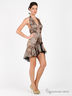 Детали: V-образный вырез горловины, отрезной лиф, лямка завязывается на шее, скрытая застежка на молнию на спинке, сетчатый подклад юбкт, декорирована атласным бантиком