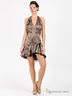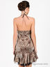 Детали: V-образный вырез горловины, отрезной лиф, лямка завязывается на шее, скрытая застежка на молнию на спинке, сетчатый подклад юбкт, декорирована атласным бантиком