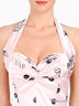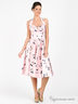 Детали: широкая лямка на шее, отрезной лиф, сборка на груди, скрытая застежка на молнию на спинке, принты