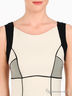 Детали: округлый вырез горловины, лямки, скрытая застежка на молнию на спинке, вытачки, контрастные вставки