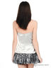 Детали: без бретелей, сзади застегивается на молнию, лиф усилен косточками, полочка и низ украшены серебристыми пайетками, сбоку атласный бант
