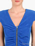 Детали: V-образный вырез горловины, короткий рукав, застежка на молнию на полочке, имитация передних карманов, сборки