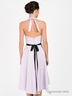 Детали: завязки на шее, отрезной лиф, скрытая застежка на молнию на спинке, по боковым швам пришиты шлевки, в комплекте атласный поясок-лента