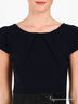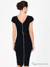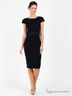 Детали: округлый вырез горловины, короткий рукав, застежка на молнию на спинке, вытачки, отрезной атласный пояс, сборки
