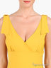 Детали: V-образный вырез горловины с запахом, отрезной лиф, лямки декорированы лентами, отрезной пояс, скрытая застежка на молнию на спинке
