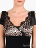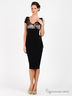Детали: V-образный вырез горловины с запахом, отрезной атласный лиф, лямки декорированы атласными лентами, отрезной пояс, скрытая застежка на молнию на спинке