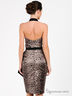 Детали: лямка на шее, отрезной пояс, скрытая застежка на молнию на спинке, передняя часть декорирована крупным черным бантом