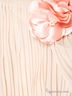 Изящное платье свободного силуэта для девочки плиссированной ткани. Овальный вырез горловины. Короткие цельнокроеные рукава. Модель дополнена поясом и брошью.