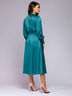 Платье длины миди цвета морской волны с драпировкой и длинными рукавами