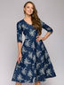 Платье длины миди джинсовое с принтом и рукавами 3/4