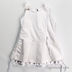 Модель расклешенного кроя. Платье на лямках застегивается на спинке на молнию. В боковые швы вставлены ленты для утягивания изделия по длине. К подкладу пришиты две полосы хлопковых оборок.