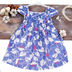 Тонкое летнее платье голубого цвета пестрой расцветки для девочки.