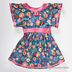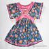 Легкое платье, на кокетке, с цельнокройным рукавом и V-образным вырезом. На груди украшен вышивкой с пайетками, а по рукаву и подолу ажурной тесьмой.