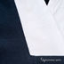 Модель слегка расклешенного силуэта. Воротник-матроска с рисунком имитирующим веревку. Край платья белый, отделен плотной лентой с названием бренда.