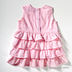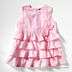 Нежное платье на лето из полосатой ткани с воланами и декоративными цветочками. Застежка на кнопки на спине.