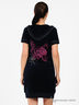 Великолепное домашнее платье приталенного силуэта с капюшоном. Окантовка V-образного выреза, манжеты короткого рукава и низ изделия выполнены из трикотажа рибана. Два кармана, декорировано принтом на спинке и шнуровкой на кармане. Отличная комфортная модель для дома на каждый день.
