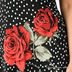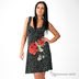 Элегантное короткое платье приталенного силуэта. Лиф с широкими бретелями. Слегка расклешенная юбка. На полочке принт в виде яркой розы.