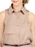 Детали: отложной воротник-стойка, без рукавов, застегивается на пуговицы, на полочке накладной карман, талия со шлевками на тонком регулируемом ремешке