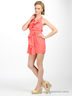Детали: бретель-петля, отрезной лиф украшенный воланами, втачной пояс, сзади вставка из тонких резиночек