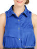 Детали: отложной воротник-стойка, без рукавов, застегивается на пуговицы, на полочке накладной карман, талия со шлевками на тонком регулируемом ремешке