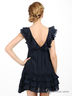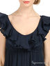 Детали: v-образный вырез, без рукавов, полочка украшена рюшами, талия посажена на резинку, снизу вставка из вязаного кружева, многослойные воланы