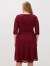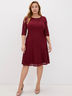 Платье приталенного кроя выполнено в однотонной расцветке. Круглый вырез горловины, рукава 3/4, длина миди.