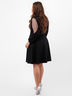 Платье приталенного силуэта, выполнено из плотной трикотажной ткани. Перед изделия на запахе, верх платья открывает зону декольте, низ - слегка показывает коленку. Рукав реглан, выполнен из кружевной ткани в горошек. Акцент на талии помогает сделать притачной пояс, одна сторона которого из основной ткани, вторая - из кружева. Спинка изделия цельная без особенностей, рукав реглан дублируется