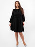 Платье приталенного силуэта, выполнено из плотной трикотажной ткани. Перед изделия на запахе, верх платья открывает зону декольте, низ - слегка показывает коленку. Рукав реглан, выполнен из кружевной ткани в горошек. Акцент на талии помогает сделать притачной пояс, одна сторона которого из основной ткани, вторая - из кружева. Спинка изделия цельная без особенностей, рукав реглан дублируется
