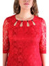 Платье выполнено из красивой кружевной ткани прилегающего силуэта. По переду расположены два рельефных шва, рукав втачной 3/4 из кружева с манжетом. Спинка со среднем швом и шлицей. Детали: горловина оформлена овальными вырезами, декорированные стразами в количестве четырех штук.