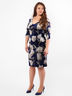 Платье полуприлегающего силуэта, выполнено из мягкой велюровой ткани. Перед изделия с талиевыми вытачками и V-образным вырезом. Спинка без особенностей. Рукав втачной 3/4.