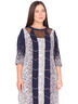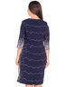 Платье выполнено из трикотажной ткани полуприлегающего силуэта. По переду расположены кокетки из прозрачной сетки в количестве трех штук. По переду идут две вставки контрастного цвета, которые заметно удлиняют силуэт и делают фигуру более стройной. Спинка платья выполнена из более темного материала, со среднем швом и шлицей.