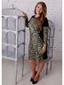 Платье изготовлено из фактурной трикотажной ткани. Полуприлегающего силуэта, рукав втачной, поделен на две части, верхняя часть темного цвета. По переду расположены две кокетки, имитирующие рукав «реглан». Горловина переда овальной формы, выделена контрастным цветом с V-образным вырезом. По переду расположены бочки с фигурным выступом, выделенные также контрастным цветом. Платье отрезное по линии талии с талиевыми вытачками. Спинка изделия дублирует перед.