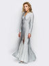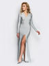 Оригинальное и элегантное платье в пол с небольшим шлейфом и откровенным вырезом до бедра. На полочке V-вырез. Длинное платье подчеркнет стройные очертания и красоту ног.