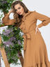Однотонное платье с расклешенной юбкой и воланом понизу. Талия на резинке. На полочке функциональные пуговицы. Пояс в комплекте.